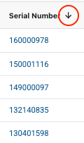 - Click a column name to toggle the sort order. An arrow (circled in red below) indicates whether the order is ascending or descending.